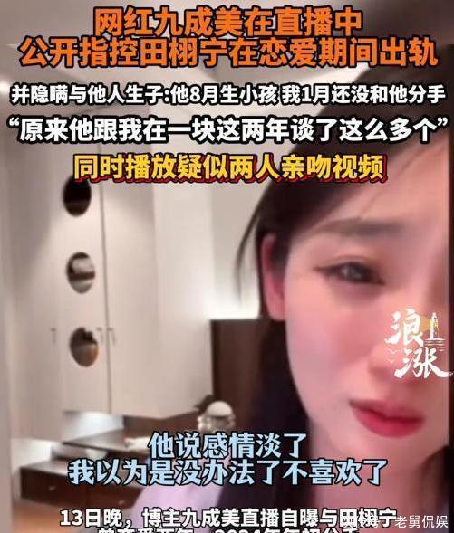 著名网红“九成美”透露,她与田先生的恋情已经持续了两年。但这一消息很可能会引起部分网友的怀疑。因此,她分享了与田先生的合影和接吻视频,在直播过程中,她边流泪边发言:“没想到他和我在过去的两年里聊了这么多话题。”“我意识到他已经有了孩子,那两年与我共度的时光也是与其他人共同拥有的。”